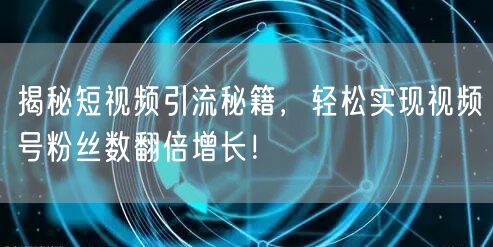 随着移动互联网的普及,短视频已成为大众获取信息的重要途径。如何有效利用短视频引流,实现视频号粉丝数翻倍增长?本文将为您揭秘短视频引流的秘籍。